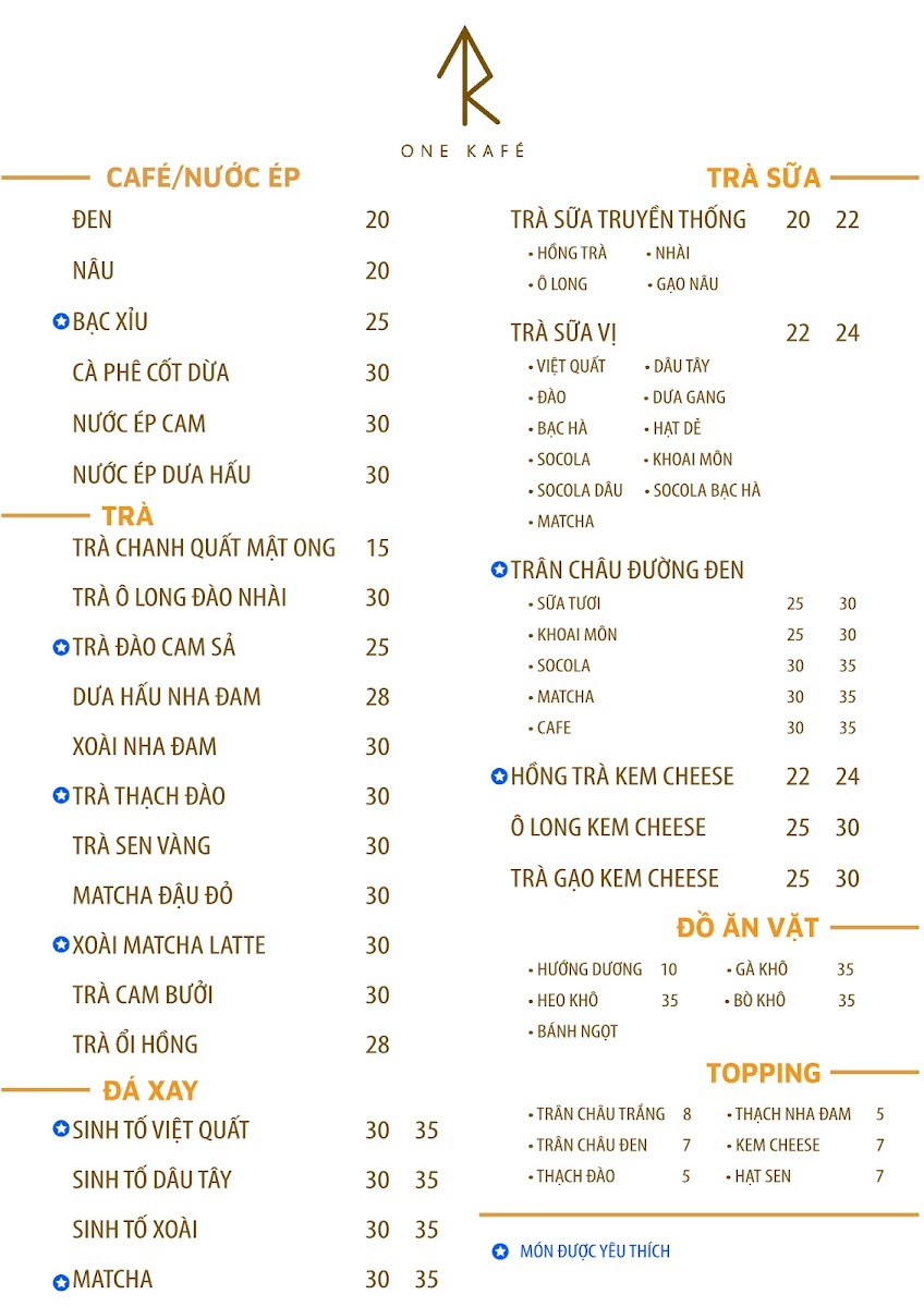 Welcome to ONE Kafé, a charming cafe nestled in the heart of Nguyễn Khắc Khoan, Bắc Ninh. This delightful establishment offers a menu that combines taste, quality, and a warm atmosphere, making it a perfect spot for relaxation or social gatherings.